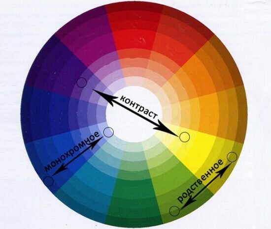 Au lieu de monochrome, vous pouvez choisir des tons associés. Ce sont ceux qui sont situés dans un cercle de couleurs et de nuances les unes à côté des autres.