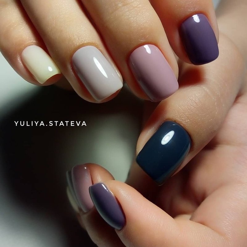 Une autre idée pour la manucure des couleurs est une combinaison de nuances chaudes et froides.