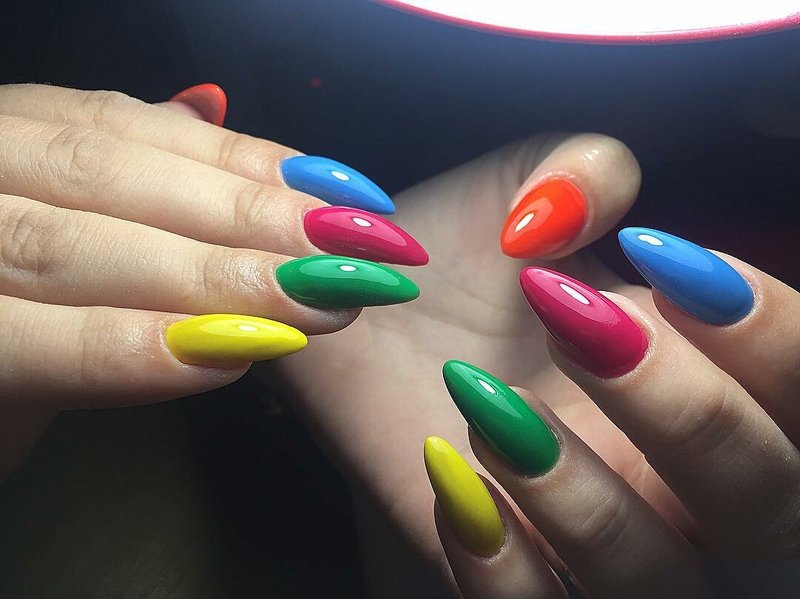 Parfois, le maître a tellement de vernis qu'il est difficile de décider non pas avec une seule option, il n'a pas assez de mains, même lorsqu'il a décidé de faire en sorte que tous les ongles soient multicolores.