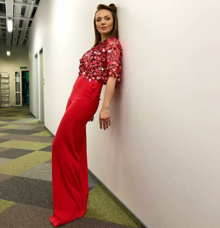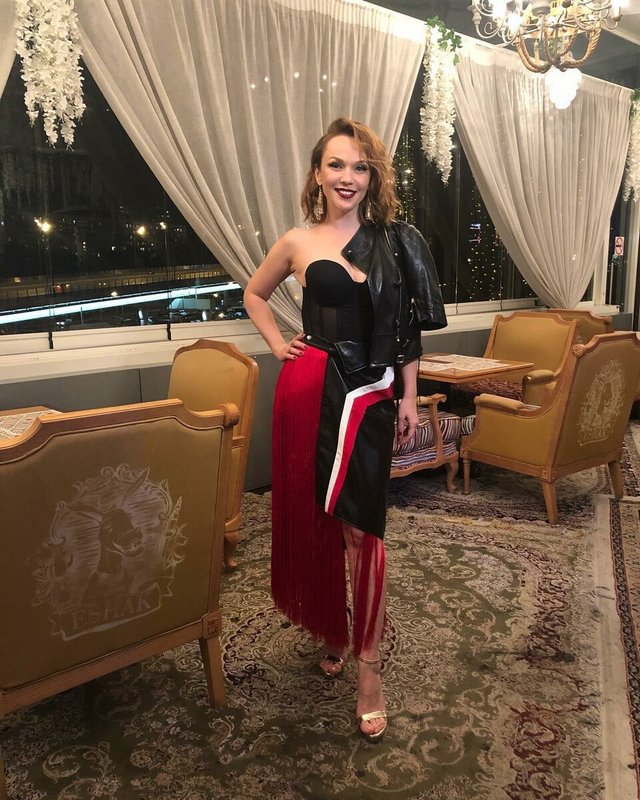 La couleur rouge est l’un des favoris de Janabaeva. Et lui, selon les fans, est une beauté très rousse.