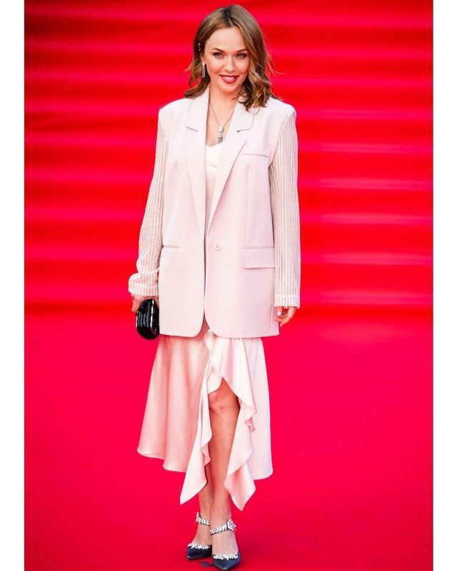 Janabaeva est toujours invitée sur le tapis rouge. Elle a l'air, en règle générale, incroyable. Par exemple, une veste pour homme et une robe légère constituent un ensemble qu’elle a présenté au Festival international du film de Moscou.Et au Festival de Cannes était dans une robe avec un décolleté profond.