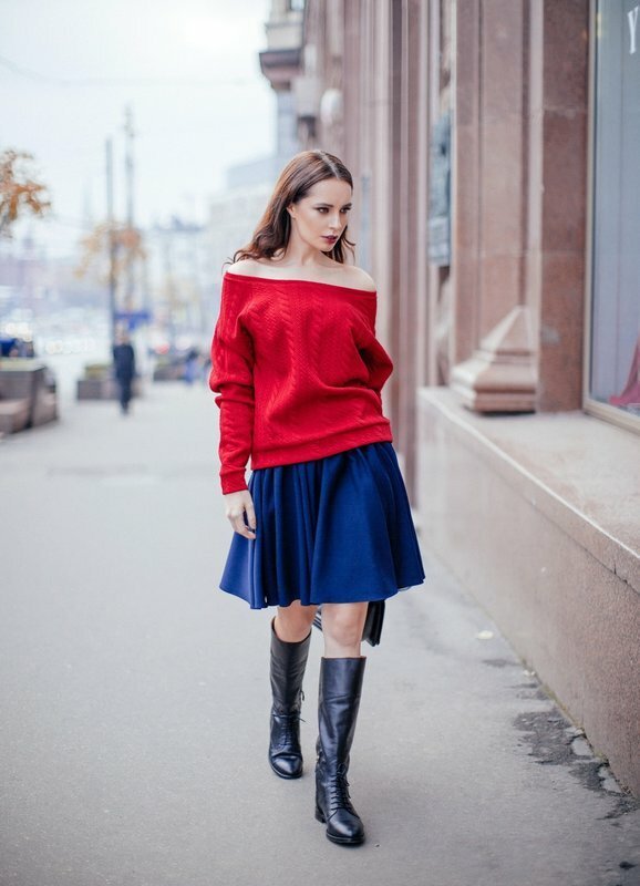 Des pulls en tricot aux couleurs vives aideront à créer une image mémorable. Les modèles de sweats peuvent être différents: épaules ouvertes ou fermées, manches longues ou courtes.