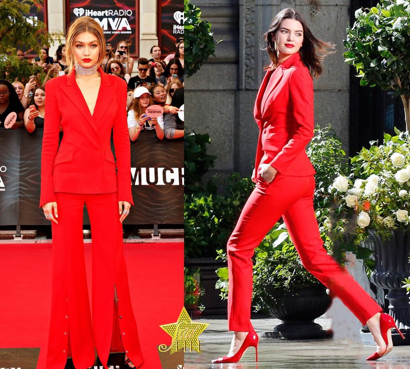 Les images en rouge tenir également la position principale. En rouge total look, vous pouvez souvent trouver Victoria Beckham (après tout, c'est sa couleur préférée), Gigi Hadid, Kendal Gener et Blake Lovely.