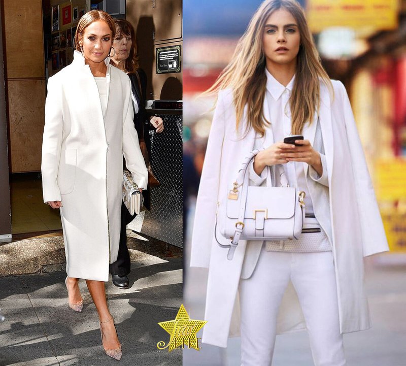 Total white look - La tendance principale de la mode cette année. Les tenues dans les tons blancs sont facilement montrées par des stars telles que Cara Delenville et Jennifer Lopez. Jennifer Lawrence, Rosie Huntington-Whiteley et Monica Bellucci figurent parmi les fans de l’image.