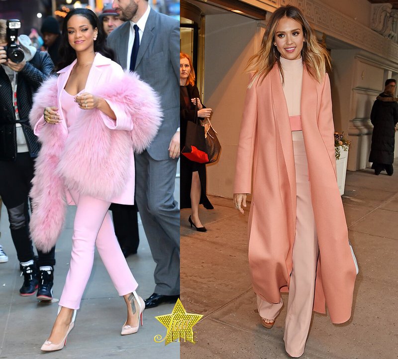 Il s’est avéré que non seulement le look total rouge est à la mode, mais aussi rose. Rihanna et Jessica Alba ont l'air mieux ainsi. Vous pouvez également souvent trouver dans le rose Lady Gaga et même la première dame Melania Trump.