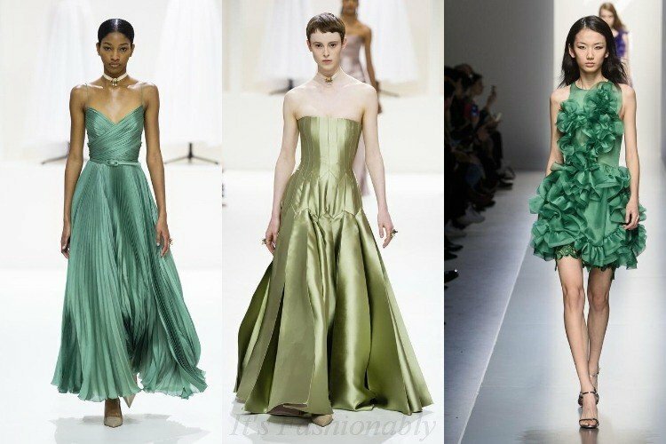La tenue aux couleurs vertes est la meilleure option pour le Nouvel An 2024. La couleur verte symbolise l'énergie et la vitalité. Chaque fille pourra choisir une robe de vacances lumineuse dans cette couleur, car le vert a de nombreuses nuances - émeraude, malachite, kaki, citron vert, pistache. Les filles rouges avec des taches de rousseur pour la tenue de Noël peuvent choisir des robes à l’olive, à la pistache et dans les marais. Les brunes conviendront à la couleur verte dans les tons froids - émeraude ou jade. Le citron vert, le citron vert ou les nuances de pomme verte conviendront aux blondes à la peau claire.