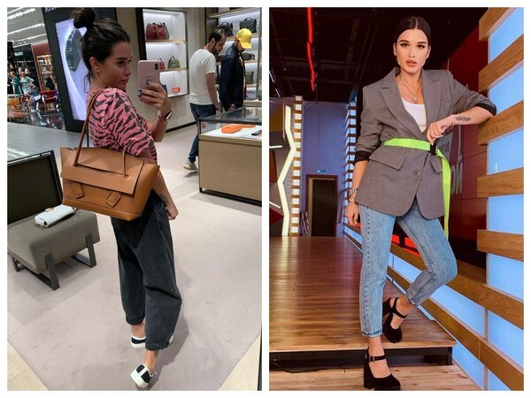 À la mode les vélos Borodin porte des chaussures non moins pertinentes: les mules. Elle a également réussi à essayer des shorts allongés en jean, comme Kim Kardashian et les soeurs Hadid. Naturellement, ils sont jumelés à des baskets sur la plateforme.